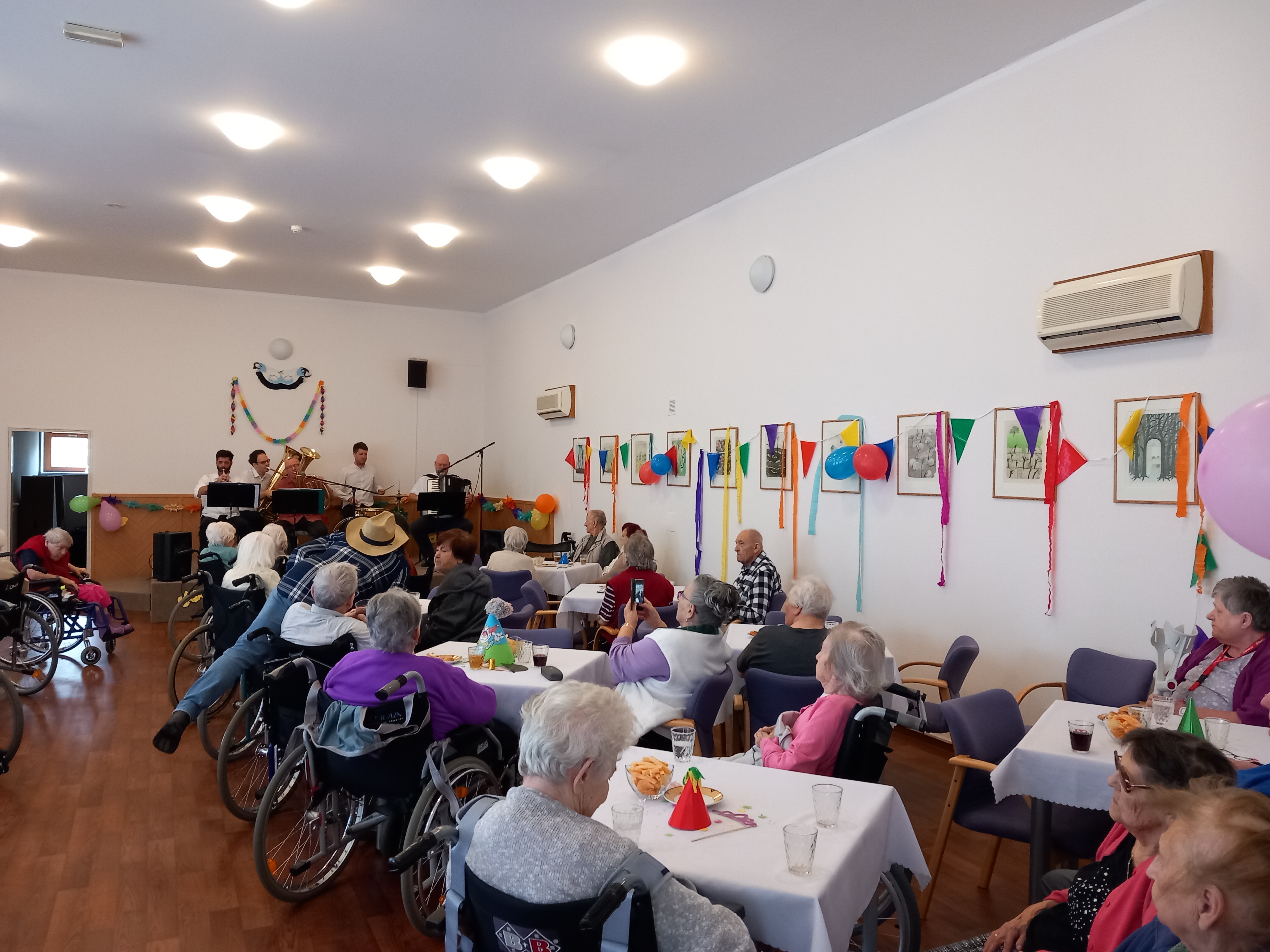 V sobotu 18.2.2023 se v našem domově seniorů, po třech letech, uskutečnila masopustní zábava. K tanci a poslechu nám hrála Dobříšská pětka pod vedením pana Růžičky. V zábavě nás přišly podpořit i krásné masky z města. Naši klienti si s maskami společně zazpívali, zatančili, pojedli a popili. Všichni byli rádi, že jsme opět mohli navázat na naší "Masopustní tradici", a to zejména ve spolupráci s TJ Sokolem Dobříš.
