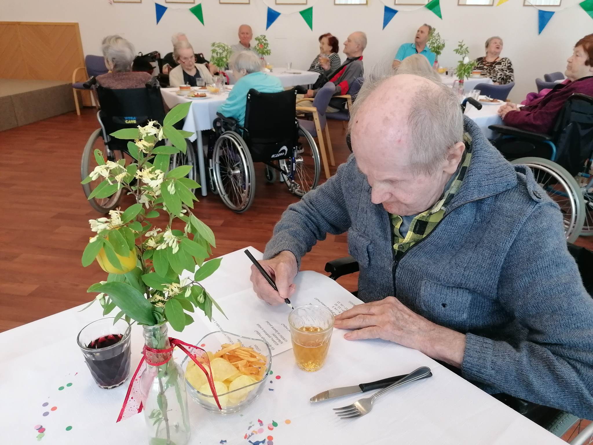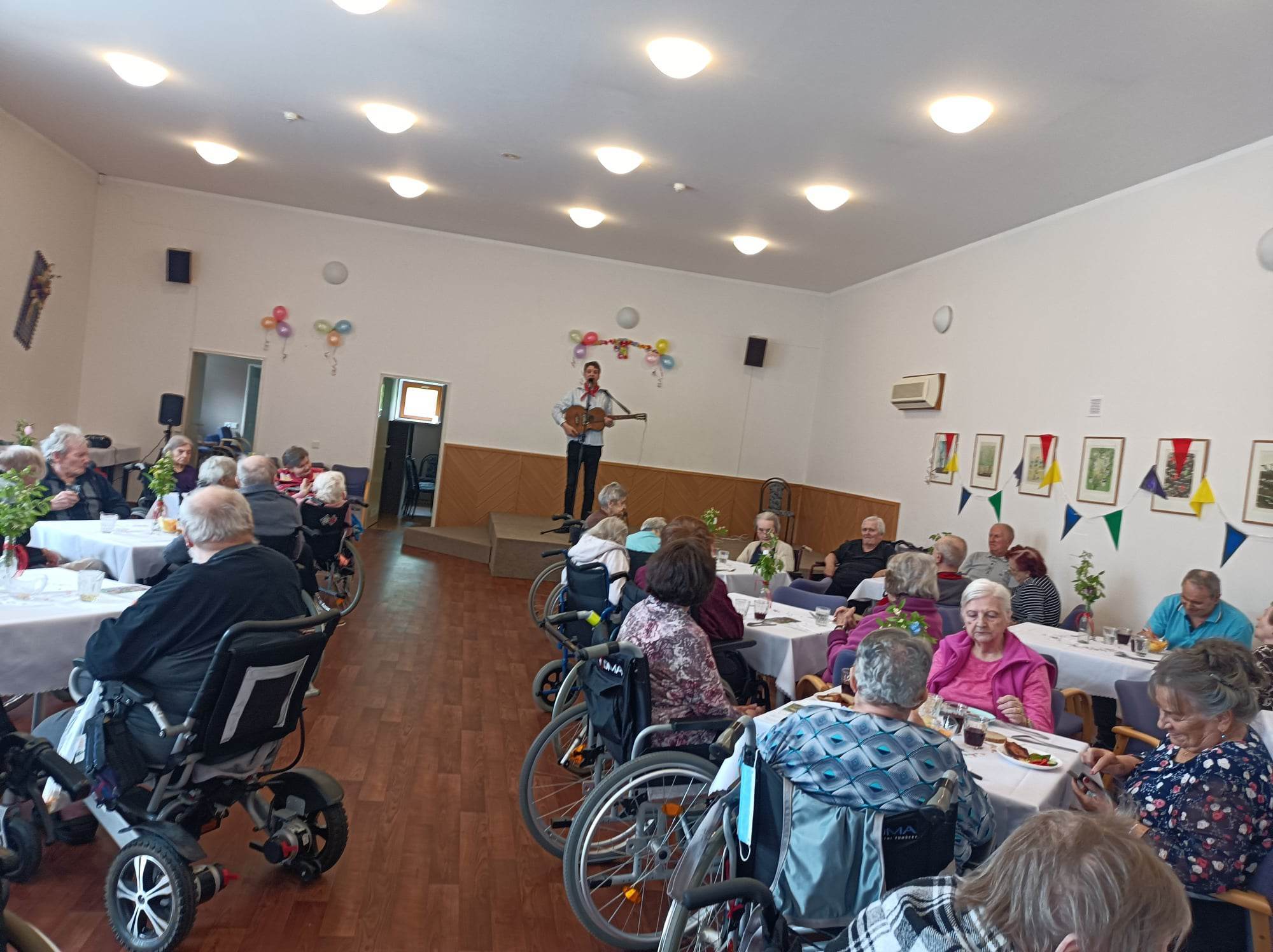 Dnes jsme si užili májovou grilovačku za hudebního doprovodu pana Pecháčka. Poslechli jsme si i básničku Máj od K.H.Máchy, kterou nám přednesla naše klientka paní Rezková. A samozřejmě nechyběl ani Veselý májový kvíz, po jehož vyluštění čekala každého sladká odměna. Děkujeme všem zaměstnancům, kteří se na dnešní akci podíleli a rovněž děkujeme za pomoc i žákům a žákyním z 9té třídy 2.ZŠ Dobříš. Akce se klientům moc líbila a určitě brzy zas nějakou akci vymyslíme...