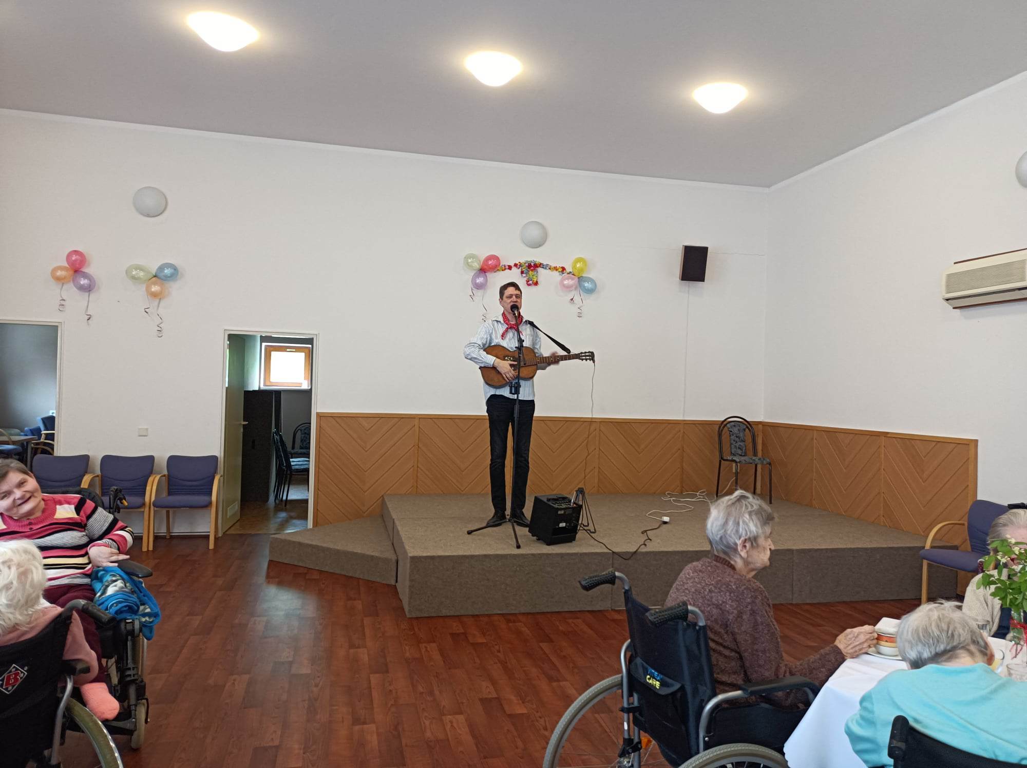Dnes jsme si užili májovou grilovačku za hudebního doprovodu pana Pecháčka. Poslechli jsme si i básničku Máj od K.H.Máchy, kterou nám přednesla naše klientka paní Rezková. A samozřejmě nechyběl ani Veselý májový kvíz, po jehož vyluštění čekala každého sladká odměna. Děkujeme všem zaměstnancům, kteří se na dnešní akci podíleli a rovněž děkujeme za pomoc i žákům a žákyním z 9té třídy 2.ZŠ Dobříš. Akce se klientům moc líbila a určitě brzy zas nějakou akci vymyslíme...