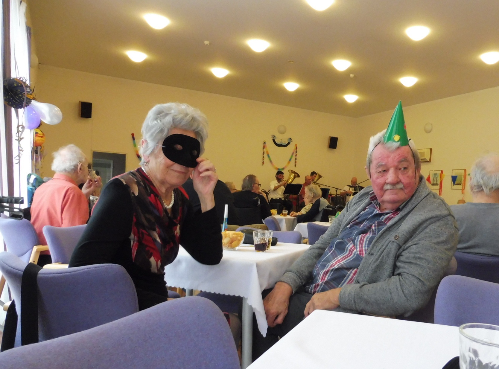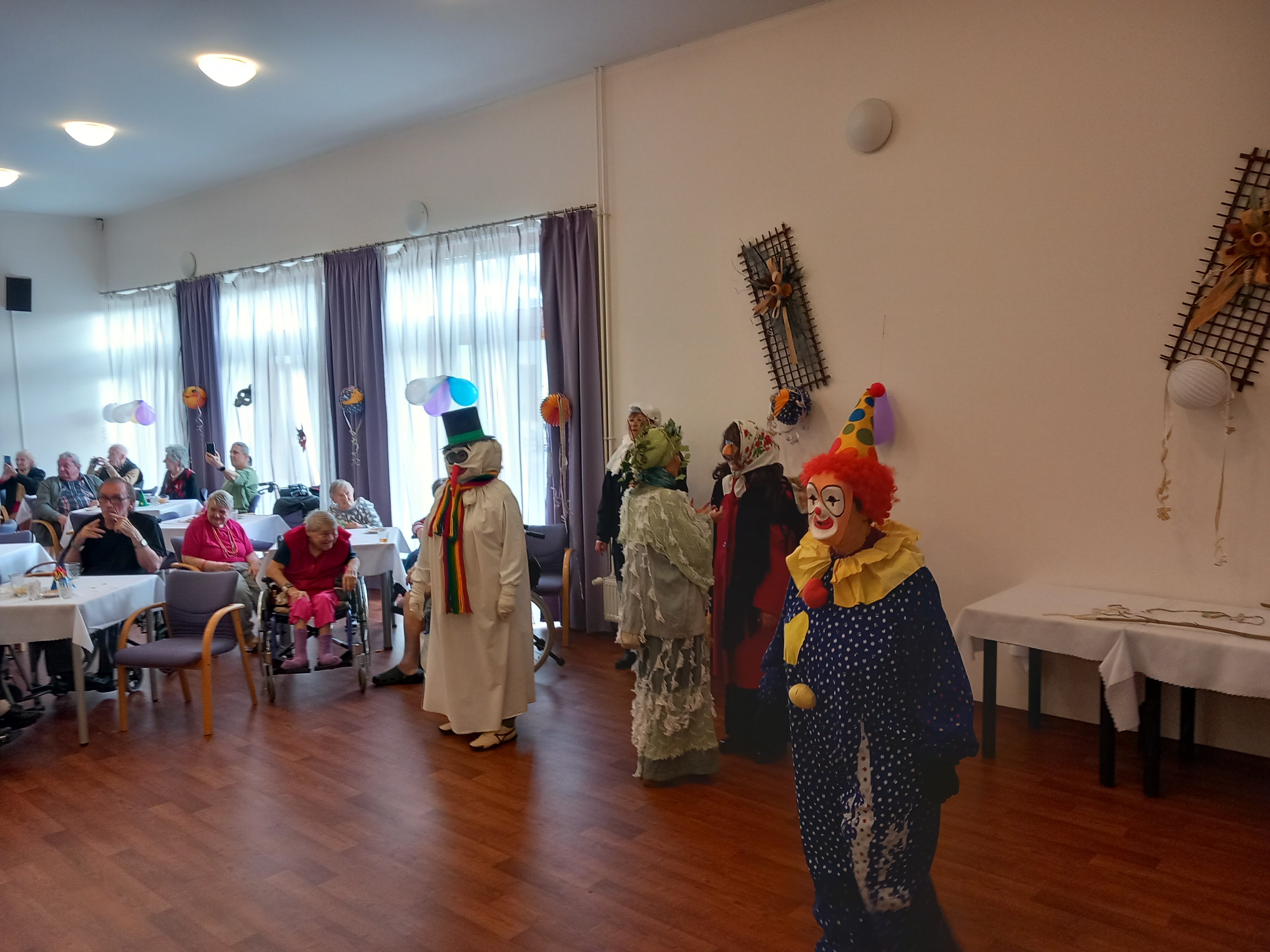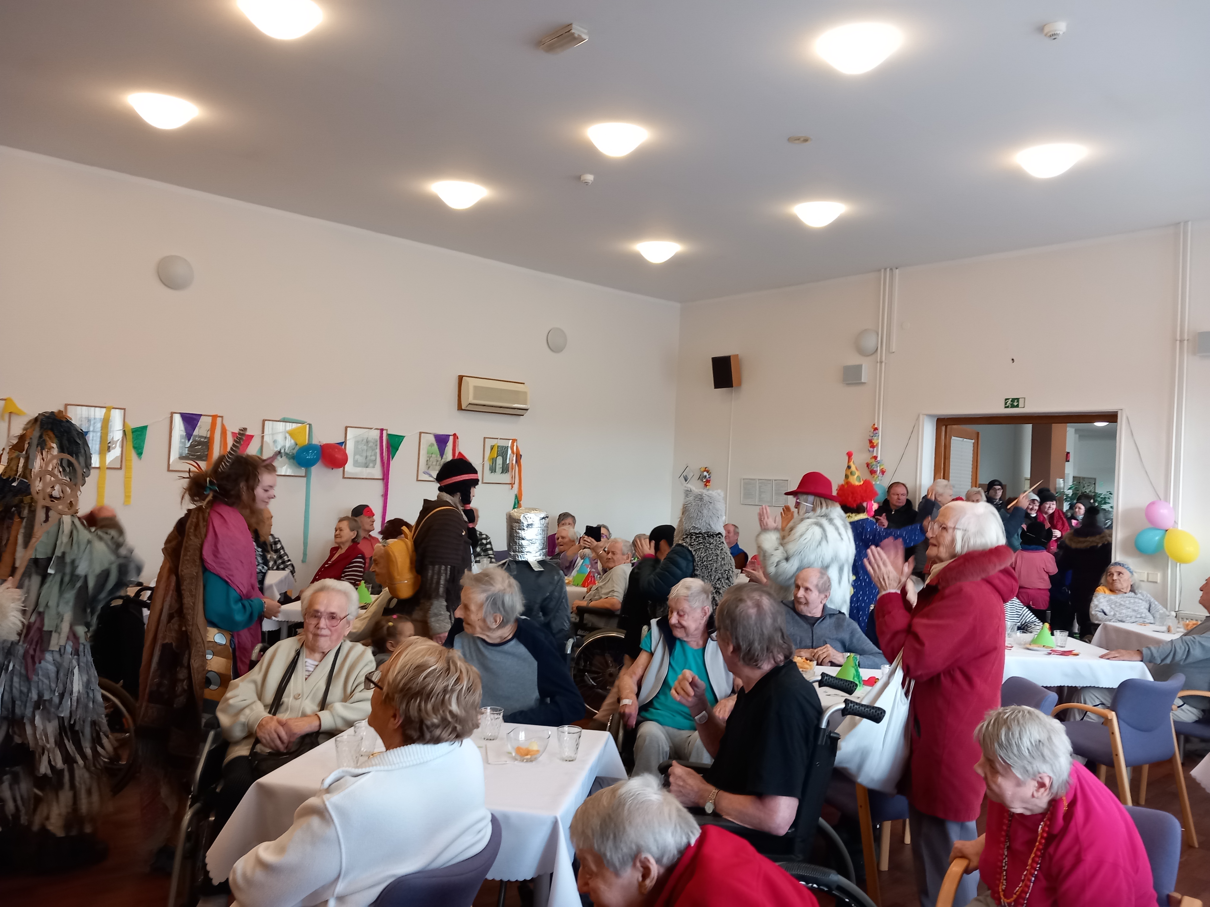 V sobotu 18.2.2023 se v našem domově seniorů, po třech letech, uskutečnila masopustní zábava. K tanci a poslechu nám hrála Dobříšská pětka pod vedením pana Růžičky. V zábavě nás přišly podpořit i krásné masky z města. Naši klienti si s maskami společně zazpívali, zatančili, pojedli a popili. Všichni byli rádi, že jsme opět mohli navázat na naší "Masopustní tradici", a to zejména ve spolupráci s TJ Sokolem Dobříš.