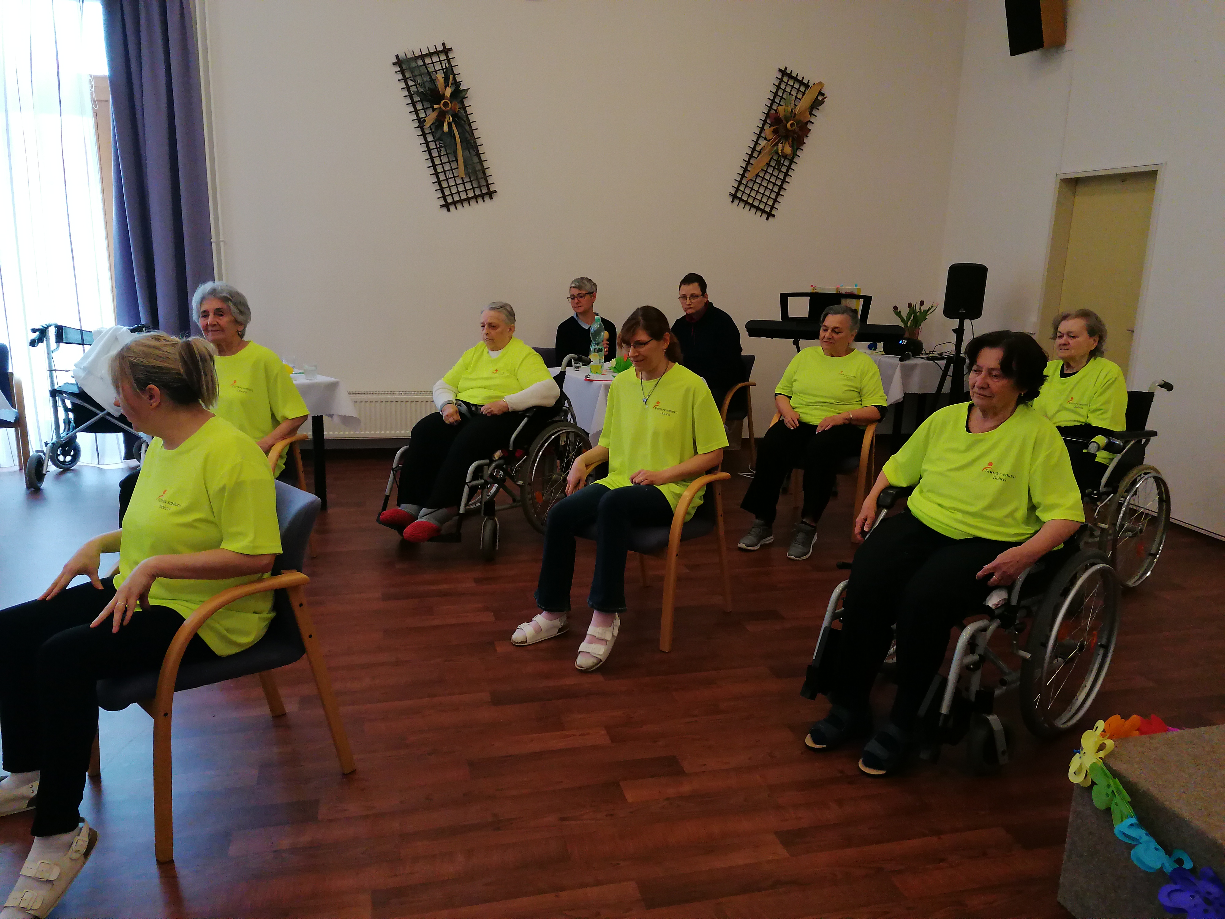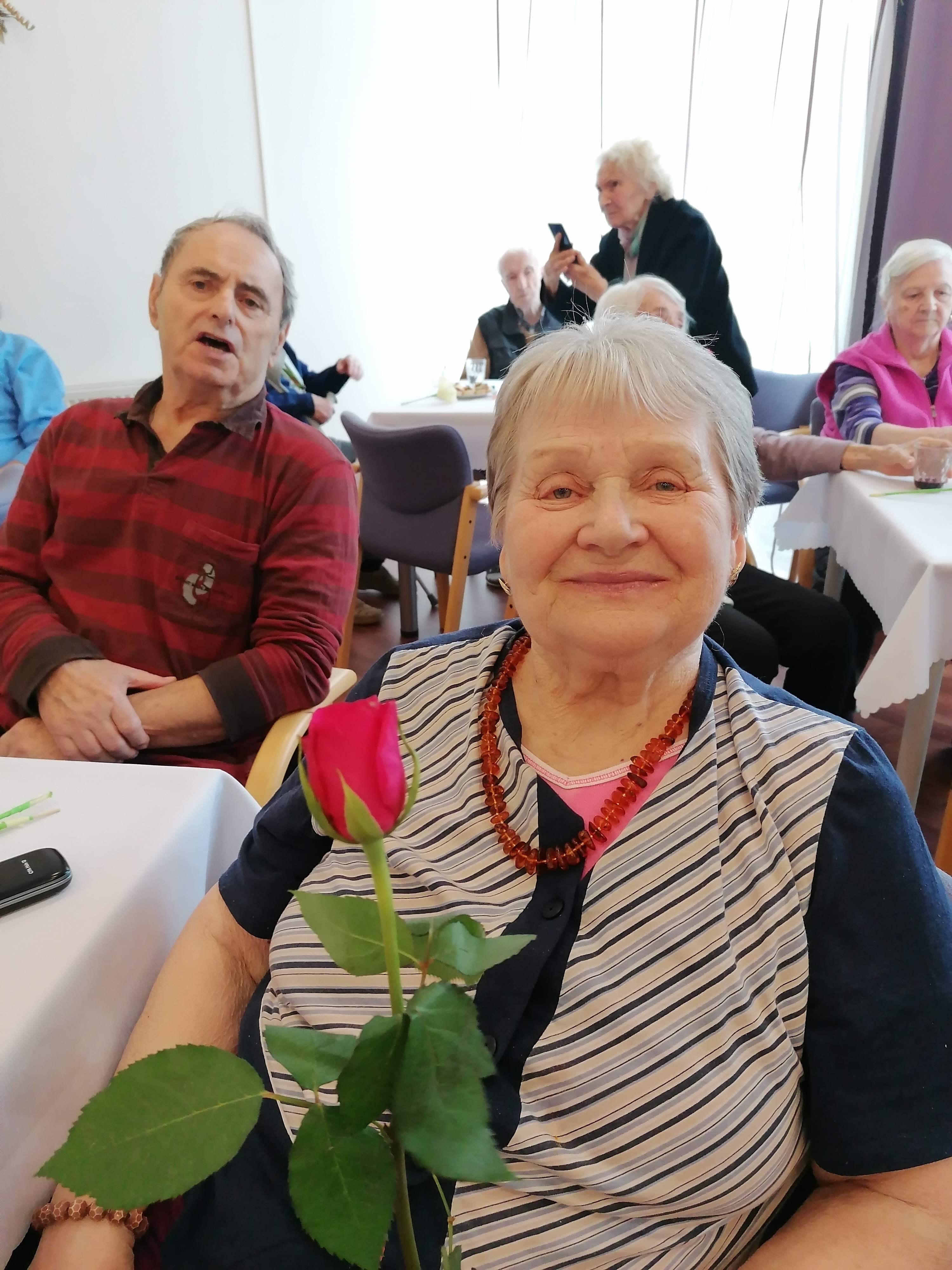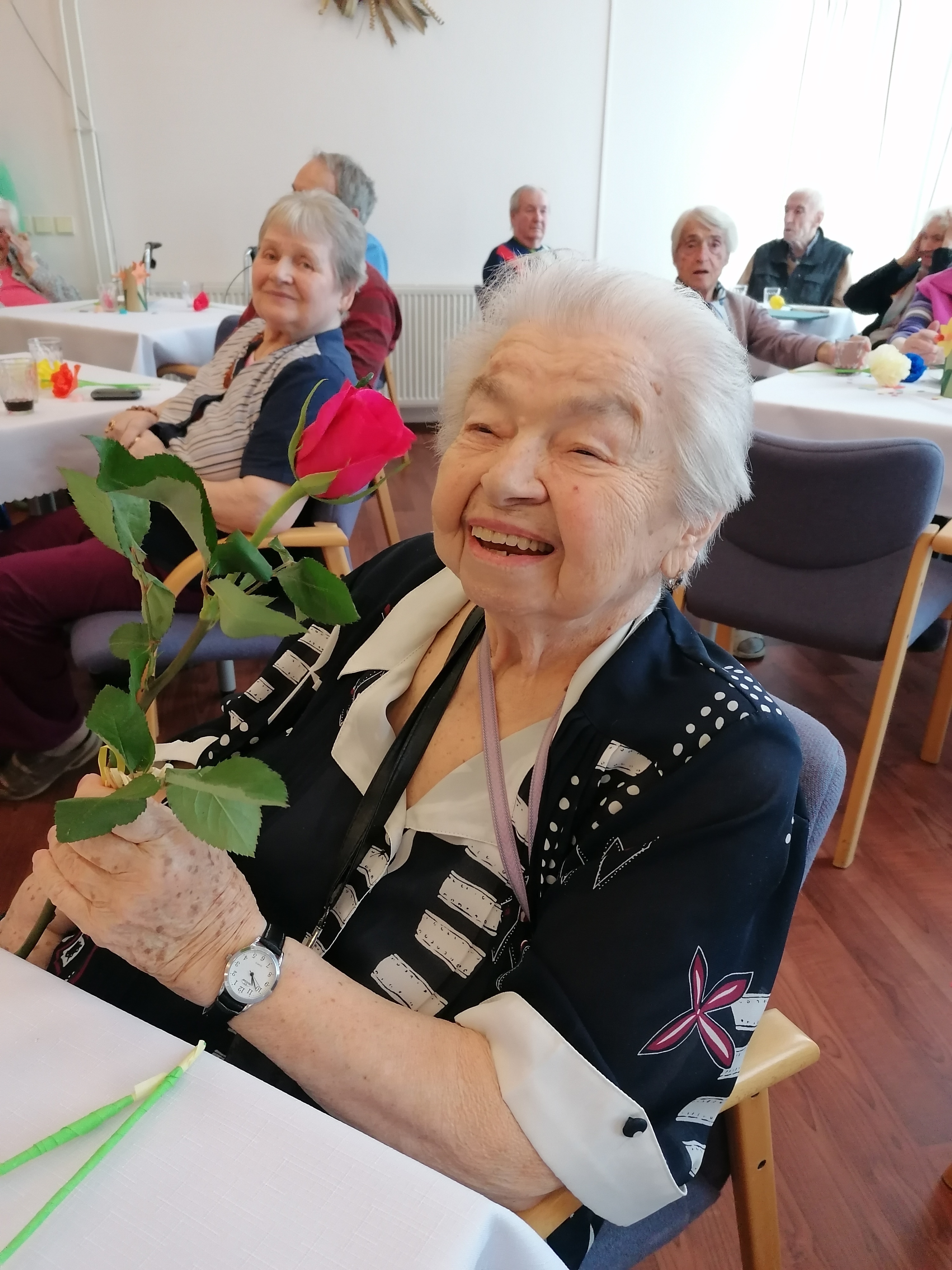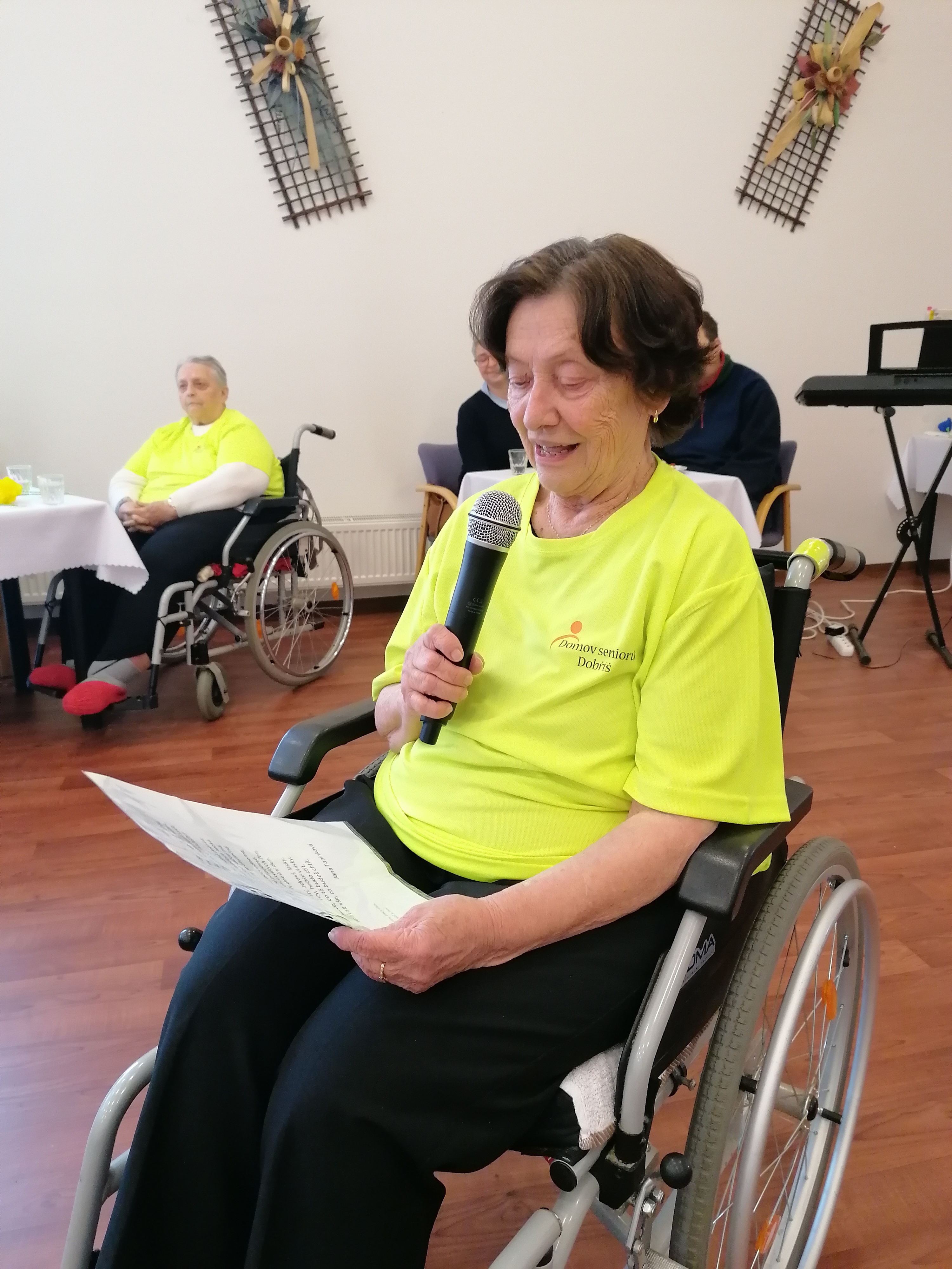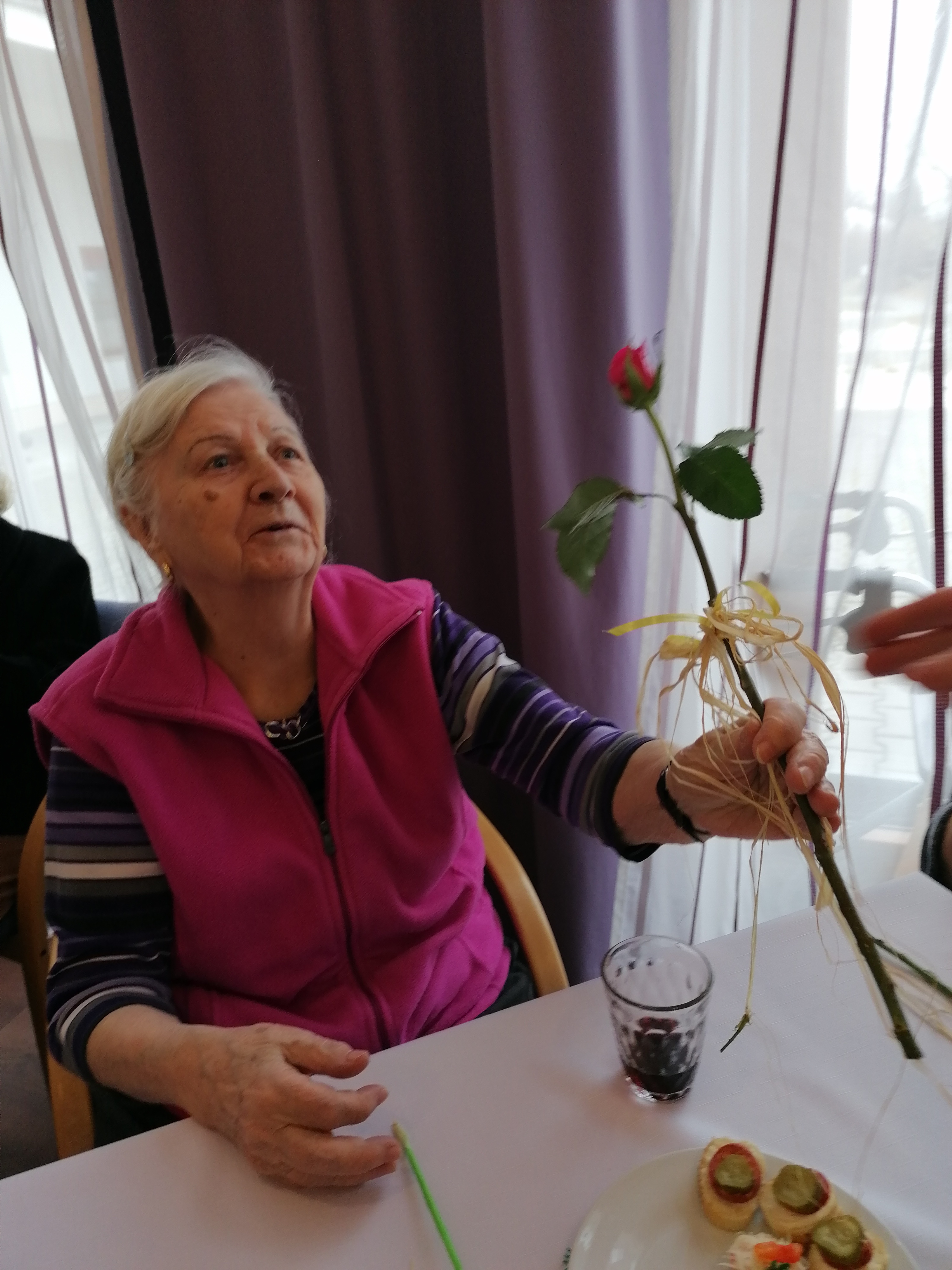 Dnešní den jsme oslavili MDŽ. Děkujeme dětem ze. 4.MŠ Dobříš a jejich učitelkám za krásné pásmo básniček a písniček, rovněž i za květiny, které vyrobili. Zazpívali jsme si s paní Gabrielou Hrubou za hudebního doprovodu pana Miroslava Urbánka (oba z organizace Rukama Nohama). Dopolední program nám zpestřily naše kolegyně, které spolu s klientkami nacvičily vystoupení, a zároveň i naše klientka, jenž nám přednesla básničky. Ještě jednou všem moc děkujeme za zpříjemnění dnešního dne